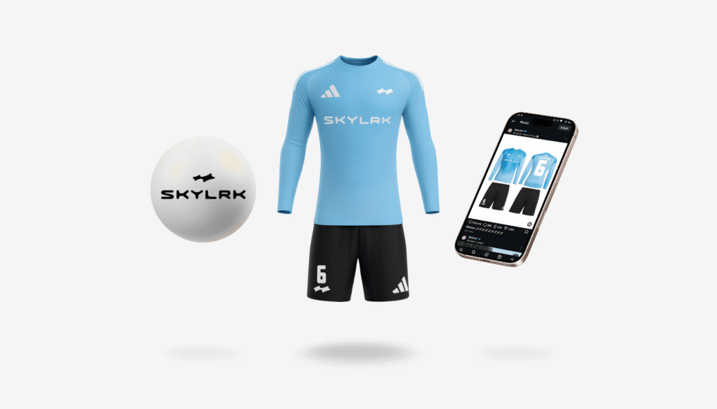 A light-blue kit, cleat-coded sneakers, and a drumbeat of Instagram teasers point to SKYLRK’s most ambitious chapter yet.